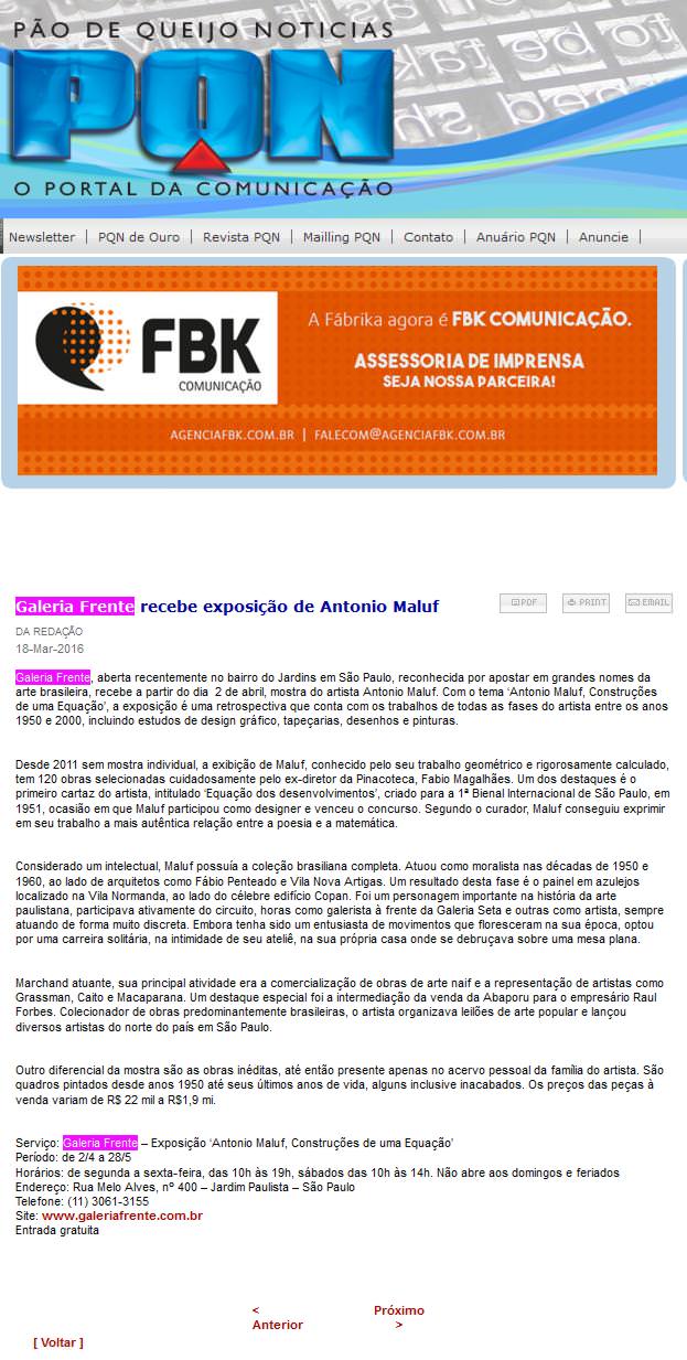 A Galeria Frente é destaque nas principais mídias impressas e digitais, veja algumas matérias abaixo.